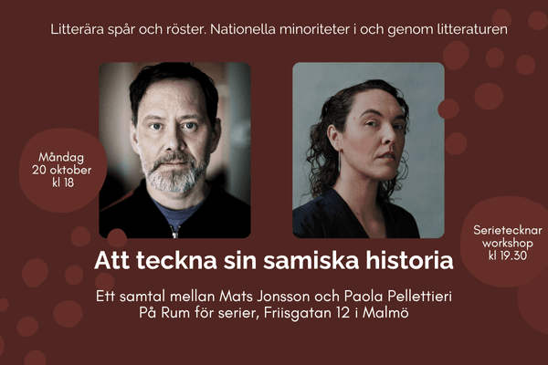 Att teckna sin samiska historia Litterära spår och röster – Måndag den 20 oktober möts Mats Jonsson och Paola Pellettieri i ett samtal om att teckna sina rötter och sin samiska historia.